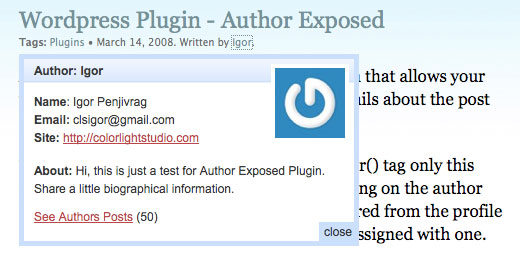 Author Exposed is a simple WordPress plugin that allows your visitors easy and elegant way to see more details about the post author.